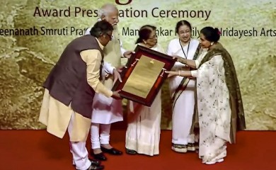 Mumbai, April 24 (PTI) Prime Minister Narendra Modi on Sunday received the first Lata Deenanath Mangeshkar award named after the legendary singer, and dedicated it to all Indians.