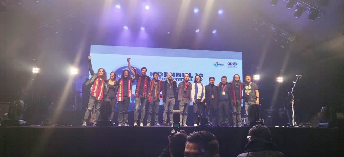 The Classic Rock Show band members; DJ Ultra; LiveNow Event, Director, Atsung Jamir; Moanungsang, the host; and Dr. Hovithal N Sothu, Project Director, TaFMA on the last night of the Hornbill Festival 2019 held