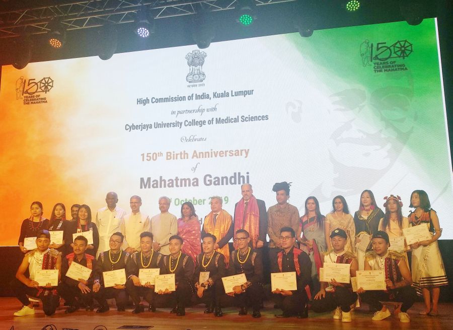 The artists seen here with the dignitaries during the ‘150 years of Mahatma’ celebration held at Kuala Lumpur on October 2.