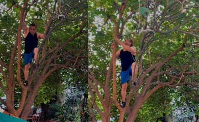 Mumbai, April 11 (IANS) Salman Khan is a true fitness freak, and his latest Instagram post is proof. The 59-year-old was seen climbing a tree to pick out some fresh berries.The video showed Salman getting on a