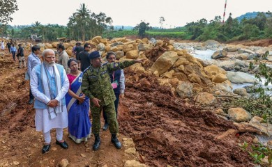 Wayanad, August 10 (IANS) Prime Minister Narendra Modi who is on a visit to the landslide-ravaged Wayanad on Saturday asked how many children lost their loved ones while visiting the damaged G.V.H.S. School Vel
