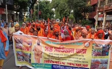 Kolkata, May 24 (IANS): Hundreds of monks on Friday joined the 'Sant Swaviman Yatra' organised by the Vishva Hindu Parishad (VHP) to protest against the recent remarks by Chief Minister Mamata Banerjee targetin