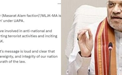 New Delhi, December 27 (IANS): Union Home Minister Amit Shah on Wednesday announced that the government has declared Muslim League Jammu Kashmir (Masrat Alam faction) as an unlawful association under the string