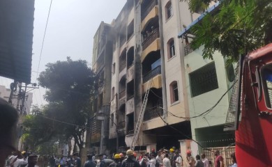 Hyderabad, November 13 (IANS) Nine persons killed and few others injured in a huge fire in a multi-storied building here on Monday.The fire, which apparently broke out in the chemical drums stored in the ground