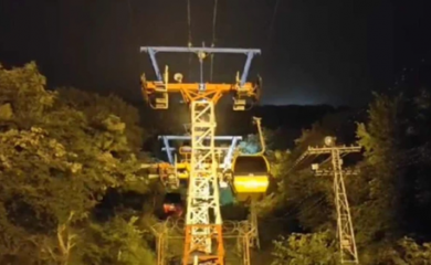 Pavagadh (Gujarat), August 26 (IANS) A cable dislodged from the aerial ropeway connecting the revered Kalika Mata temple in Gujarat's Pavagadh, leaving more than 40 passengers suspended in 10 cabins at an a