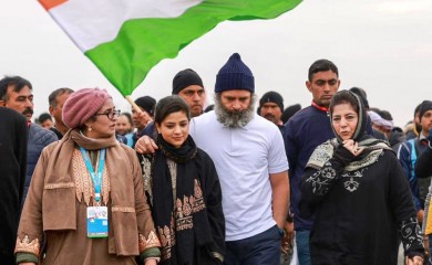 Srinagar, January 28 (IANS) Former Jammu and Kashmir Chief Minister and president of the Peoples Democratic Party (PDP), Mehbooba Mufti joined Congress leader Rahul Gandhi's Bharat Jodo Yatra on Saturday in