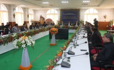 Jaipur, January 11 (IANS) At the 83rd conference of All India Presiding Officers being held in Jaipur, Vice President Jagdeep Dhankhar, Lok Sabha Speaker Om Birla and Rajasthan Chief Minister Ashok Gehlot discu