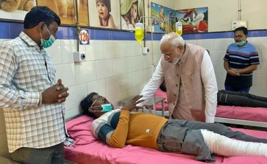 Gandhinagar, November 1 (IANS) Prime Minister Narendra Modi on Tuesday visited the site of bridge collapse in Gujarat's Morbi and took a stock of the ground situation following the disaster that claimed at