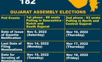 New Delhi, November 3 (IANS) The Gujarat Assembly polls will be held in two phases on December 1 and 5, the Election Commission announced here on Thursday.
