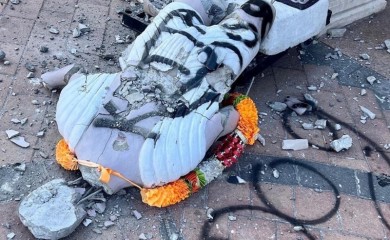 New York, August 19 (IANS): A statue of Mahatma Gandhi in front of a temple in New York has been toppled and smashed in the second attack on the memorial this month and a local volunteer watch group has sprung
