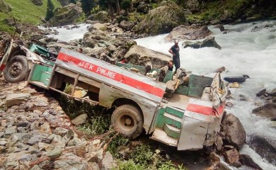Srinagar, August 16 (PTI): Six ITBP personnel and a policeman died while 32 others -- who were returning from Amarnath Yatra duty -- sustained injuries on Tuesday when a bus fell in deep gorge in Pahalgam area