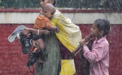 New Delhi, July 11 (PTI) Rains lashed the national capital on Monday afternoon bringing much needed respite from the muggy weather conditions that had been prevailing over the last few days.