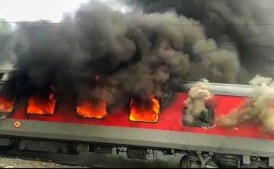 Ballia/Aligarh/Varanasi, June 17 (PTI) Raising slogans of 'Bharat Mata ki Jai' and 'Agnipath Vapas Lo', youths vandalised trains and torched a railway coach in Ballia and damaged buses at other