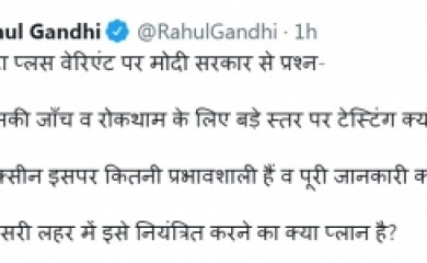 New Delhi, June 25 (IANS): Former Congress President Rahul Gandhi on Friday fired fresh salvos at the Narendra Modi government over the Delta Plus variant of Covid and asked why no testing on a large-scale was
