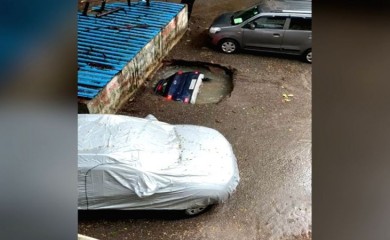 Mumbai, June 13 (PTI): A video of a car disappearing into a pool of water in a Mumbai housing complex after the spot where it was parked caved in went viral on social media on Sunday.