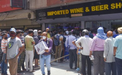 New Delhi, April 19 (PTI): Long, serpentine queues were seen outside liquor shops in Delhi soon after Chief Minister Arvind Kejriwal's announcement of a six-day lockdown on Monday, with tipplers braving the
