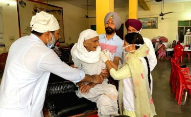 MOGA, April 11 (IANS): Kartar Kaur, a 105-year-old woman from this Punjab town, received her first dose of the Covid-19 vaccine on Sunday, along with her 80-year-old son and family members.