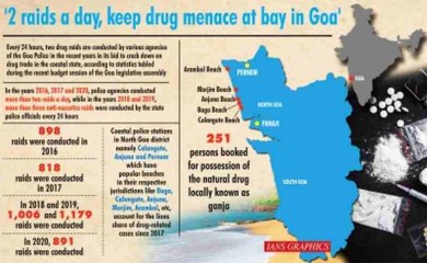Panaji, March 31 (IANS): Everyday two drug raids are conducted in Goa by police and related agencies in a bid to crack down the narcotics trade in the state, according to statistics tabled during the Budget Ses