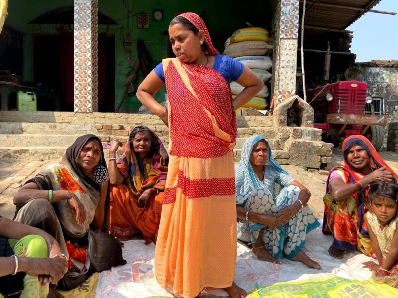 Farmer and trainer Meera Chaudhary speaks to fellow farmers at Janakpur village, India, on Feb 4, 2020. (Thomson Reuters Foundation Photo)