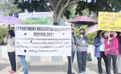 Continuing its demand for regularisation of service, staff nurses under the banner of the Department Recruited Aggrieved Nurses’ (DRAN) 2021, maintained their