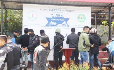 Dimapur, November 9 (MExN): The Angami Baptist Church Council, Clean Election Movement, Core Committee (ABCC, CEM, CC) organised a two-wheeler rally with the theme, ‘I stand for Clean Election’ on N