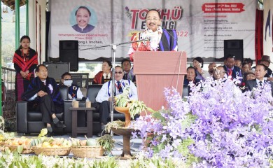 The Lotha community of Kohima today celebrated the premier festival of Lotha Nagas ‘Tokhu Emong’ with much pomp and traditional gaiety at Naga Heritag