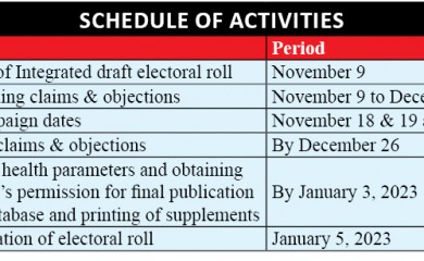 Kohima, November 6 (MExN): The Election Commission of India has ordered Special Summary Revision of Photo Electoral Rolls with respect to January 1, 2023 as the qualifying date. Chief Electoral Officer, Nagalan