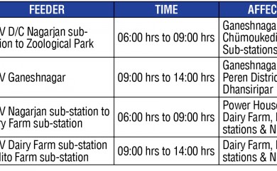Dimapur, October 21 (MExN): The Executive Engineer, Transmission Division, Dimapur has informed that the division would be facing staggered shutdowns to carry out vegetation clearance as per the department decl