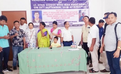 Dimapur, October 6 (MExN): A programme was held at the premises of KK Agency tower, Khatkhati under the banner of Joint Coordination Committee Assam, Nagaland on October 3 for handing over the compensation amou