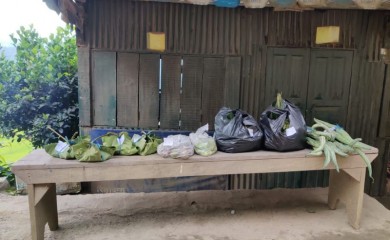 In this makeshift shop without a shopkeeper in Nerhema along NH-61, vegetables, fruits and other produce were seen being sold with prices tags attached to each item. (Morung Photo)