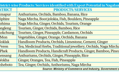 A total of 20 products and services from 12 districts in Nagaland have been identified as export potential, according to an official statement from the Ministry of Co