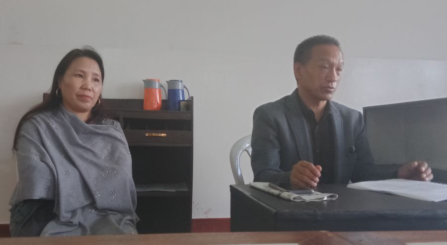 NEA President, Dr Zavise Rume and General Secretary, Dr Bweyhunle Khing addressing press conference on October 6. (Morung Photo)
