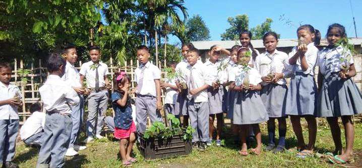 Students take part in the plantation drive conducted as part of the Wildlife Week wo19 in Longleng district.