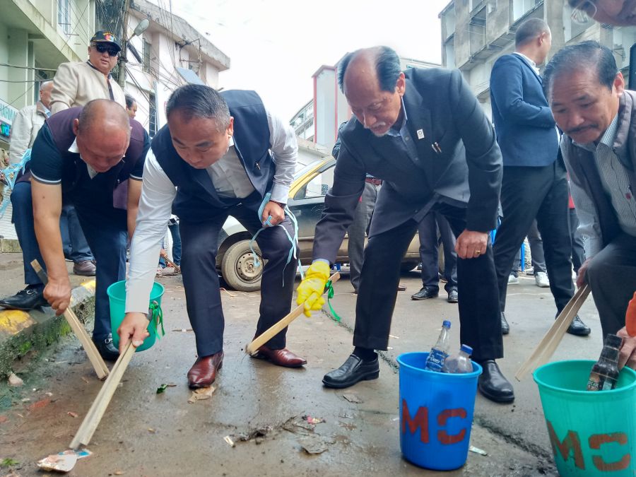 Chief Minister Neiphiu Rio leads collection of plastic waste in Kohima on October 2, which marked the occasion of state wide mass Shramdaan on plastic wastes and 150th birth anniversary of Mahatma Gandhi. (Moru