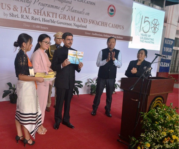 Governor RN Ravi launches the manual on Jal Shakti Campus & Jal Shakti Gram and Swacch Campus in Kohima on October 2. (DIPR Photo)