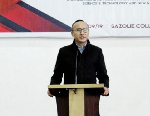 MLA and Advisor Mmhonlumo Kikon addressing the 6th annual lecture of Sazolie College held on September 30. (Photo Courtesy: Sazolie College)