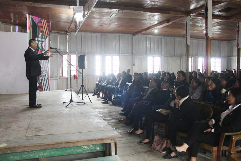 Asst. Professor Kohima Law College and president NVCO, Kezhokhoto Savi speaking at the awareness programme held at Pfutsero Government College, Phek on September 24. (Photo Courtesy: KLC)