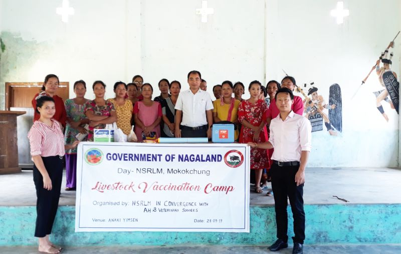 Members of DAH&VD, NSRLM, DRDA Mokokchung, participants and others at the one-day vaccination camp on livestock and integrated pest management on agricultural crops held at Anakiyimsen village for the Mahil