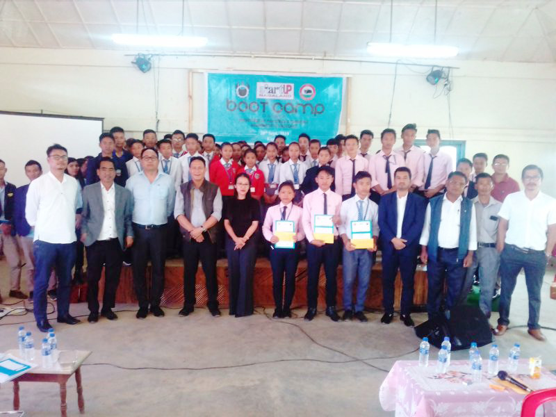 Officials team from Directorate of Industries & Commerce Kohima along with the students and the winners of 'idea pitching' at Hopongkyu Memorial hall Kiphire on September 28. (DIPR Photo)