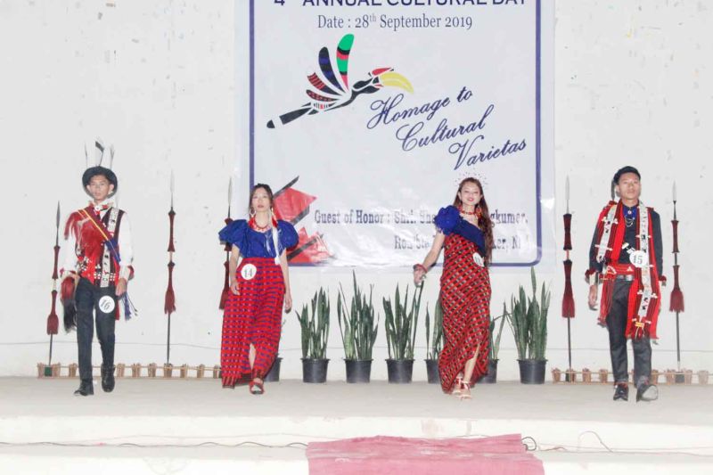 Students displaying modern traditional attire at the 4th Annual Cultural day celebration of Jubilee Memorial College at MGHSS Auditorium, Mokokchung held on September 28. (Morung Photo)
