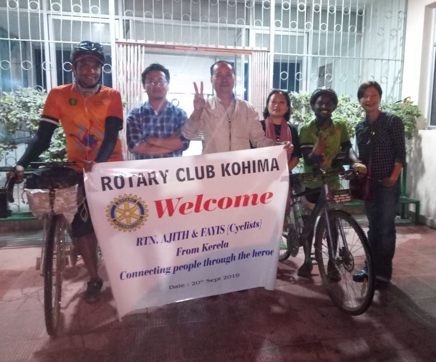 Rotary Club Kohima with Cyclists Ajith and Fayis in Kohima on September 22. The Rotary Club Kohima welcomed two cyclists from Rotary Club of Calicut Uptown, RID 3202, Kerala. They rode 45 days and reached Kohim