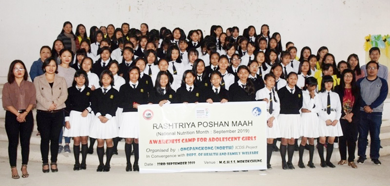 Participants along with officials during the awareness camp for Adolescent girls organized by Ongpangkong (North) ICDS project in convergence with Department of Health & Family Welfare held at Mayangnokcha