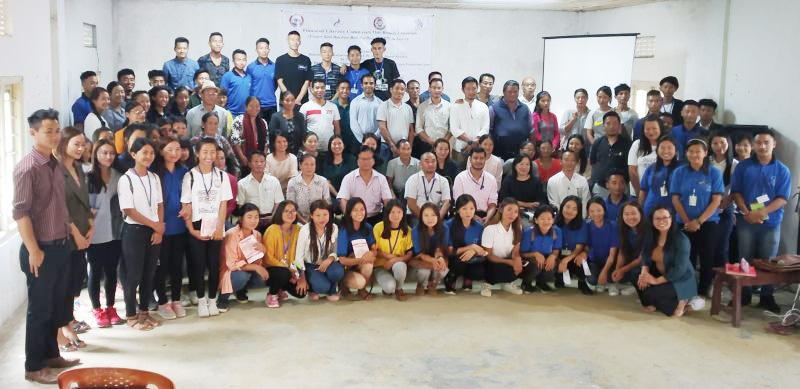 Dignitaries with participants of awareness programme for financial literacy-cum-outreach programme under BBBP at Phek on September 4.