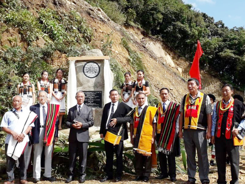 Peace activist Niketu Iralu and others during the unveiling of AZ Phizo Park at Khonoma as part of 75th anniversary of Khonoma Rüffüno Nagaland on September 1.