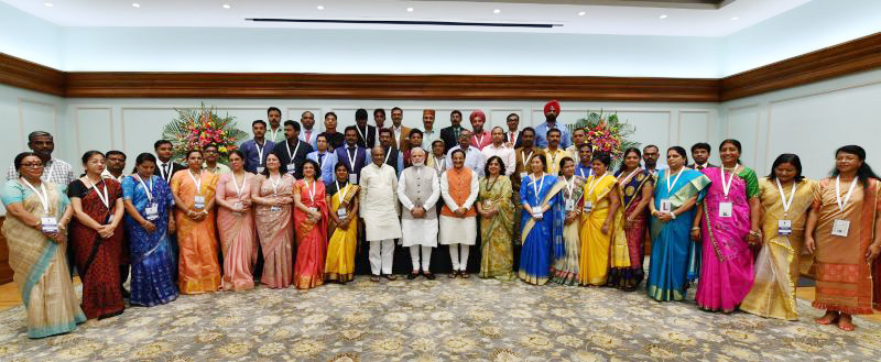Winners of the National Teacher’s Award along with Prime Minister Narendra Modi and President Ram Nath Kovind at the national capital on September 4.