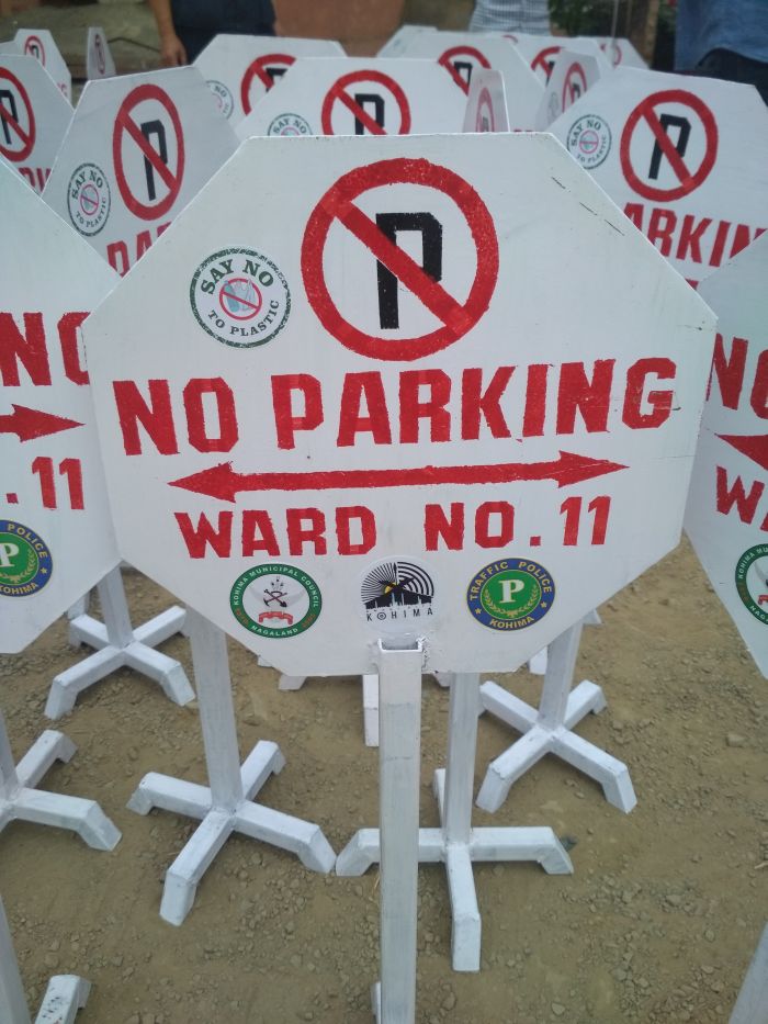 ‘No Parking’ signposts with plastic free slogan distributed by Kohima Smart City in collaboration with the Kohima Municipal Council and Kohima Traffic Police. (Photo Courtesy: Kohima Smart City)