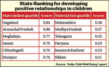 The ‘India Child Well-being Report’ has shown impressive performance by several North East States towards developing positive relationships for children.