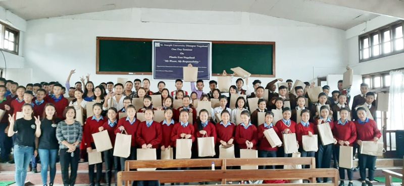 Student and other participants during the seminar on ‘Plastic Free Nagaland’ held at Khuzama Village, Kohima, on August 30. (Photo Courtesy: St. Joseph University)
