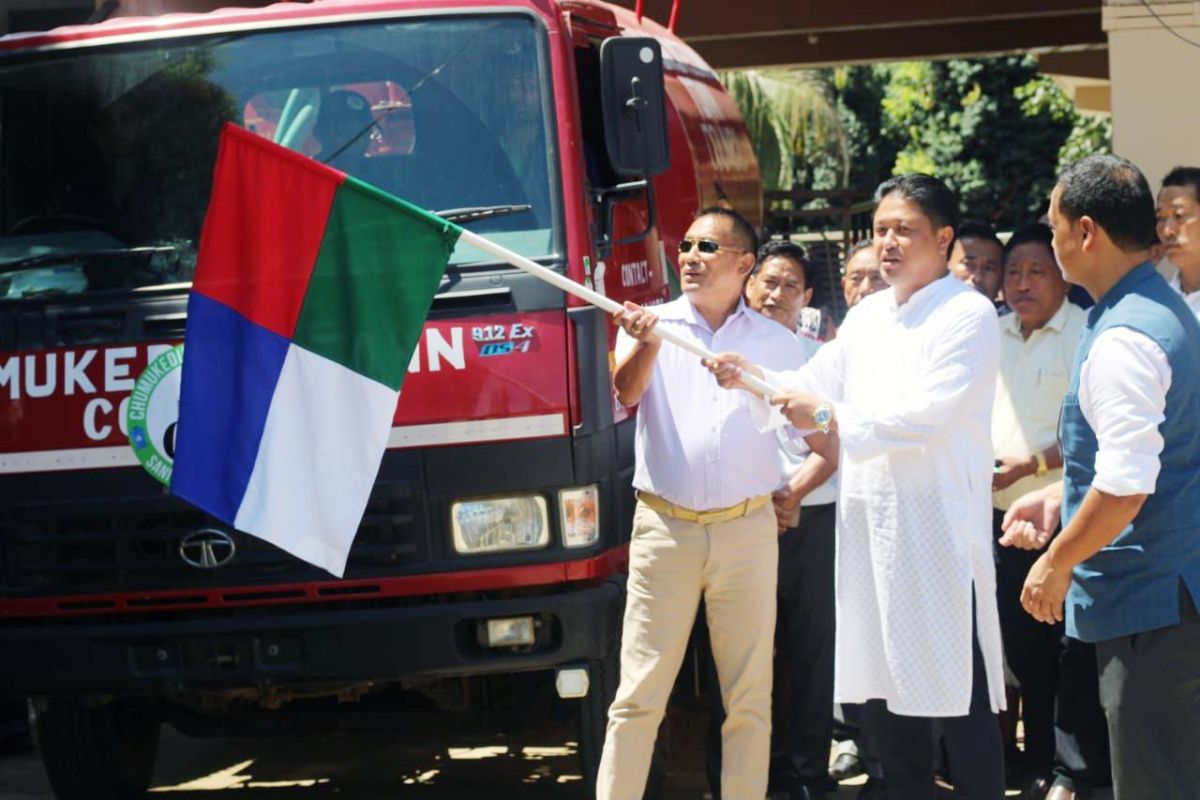 PHE Minister, Jacob Zhimomi and Dimapur DC, Kevekha Kevin Zehol launching the CTC sanitation trucks on September 2.