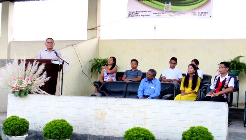 DC Dimapur Kevin Zehol addressing the awareness programme held at NU SASRD Medziphema Campus on August 27. (DIPR Photo)